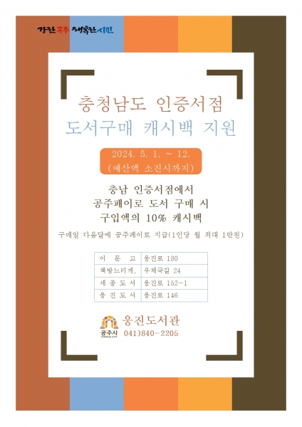 공주시, 충남 인증서점 도서구매 캐시백 지원 사업 운영
