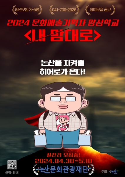 2024 문화예술기획자 양성학교 ‘내 맘대로’는 논산시에서 활동하는 청년이 포함된 청년 모임을 선착순 10팀 모집한다.
