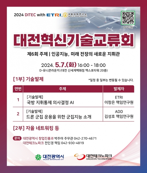 [Ytv영상스토리] 대전시는 7일 오후 4시 신세계 엑스포타워 20층 D-유니콘라운지에서 올해 여덟 번째‘대전혁신기술교류회’를 개최해, 국가안보를 책임질 첨단 인공지능 기술을 선보인다.