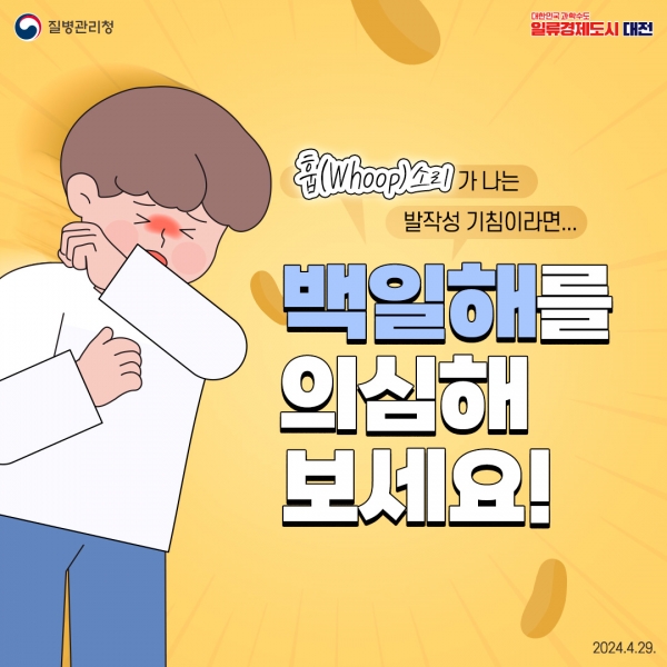 손철웅 대전시 시민체육건강국장은 “백일해는 전파력이 높아서 학교·어린이집유치원 등 단체생활을 하는 학생들에겐 특히나 예방접종 등 각별한 주의가 필요하다”며 “또, 5월은 연휴가 많은 만큼 시민 여러분께서는 모임이나 여행 시 기본 예방수칙을 꼭 준수하고 증상이 있을 시에는 즉시 의료기관에 방문해 주시길 바란다”고 말했다.