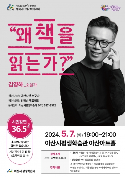 [Ytv영상스토리] 아산시는 오는 7일 오후 7시 아산시평생학습관 아산아트홀에서 김영하 작가를 초청해 행복아산 시민아카데미를 개최한다.