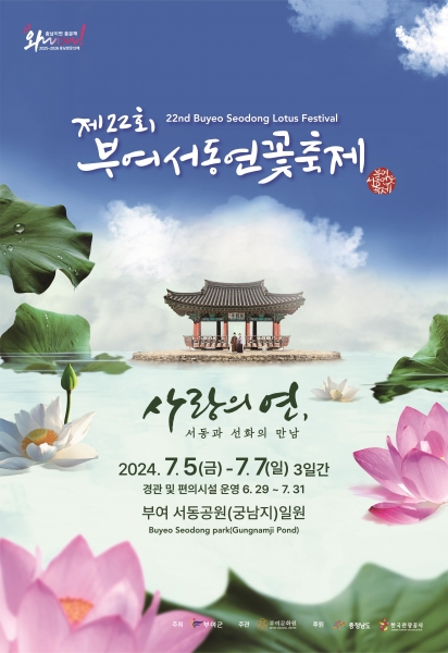 한편 제22회 부여서동연꽃축제는 “사랑의 연, 서동과 선화의 만남”이라는 주제로 오는 7월 5일부터 7월 7일까지 3일간 부여 서동공원 일원에서 개최된다.