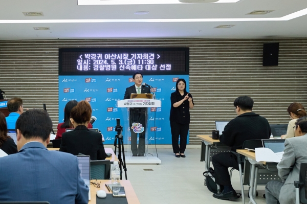 박 시장은 이날 시청 중회의실에서 기자회견을 열고 “아산 경찰병원 건립 사업이 지난 2일 기획재정부의 ‘2024년 제3차 재정사업평가위원회’를 통과해 신속예타 사업으로 선정됐다”며 이같이 밝혔다.