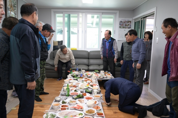 주민들이 직접 음식을 마련하고 카네이션을 달아드리며 존경과 감사의 마음을 전했다.