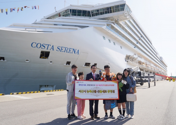 이날 시에 따르면 일본 도쿄에서 출항한 코스타세레나호는 8일 오전 7시에 서산 대산항 국가부두 1, 2부두에 안전하게 접안했다.