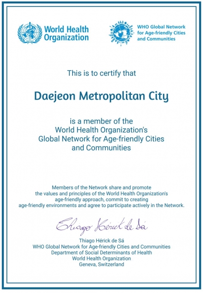 또한, 고령친화도시 추진을 위한 제도적 근거 마련을 위해 ‘대전광역시 고령친화도시 구현을 위한 노인복지 기본조례’를 제정하는 등 초고령 사회 대비 고령 친화 환경조성을 위해 박차를 가하고 있다.