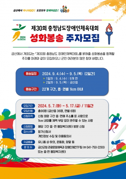 금산군, 제30회 충남도장애인체육대회 성화봉송 주자 모집