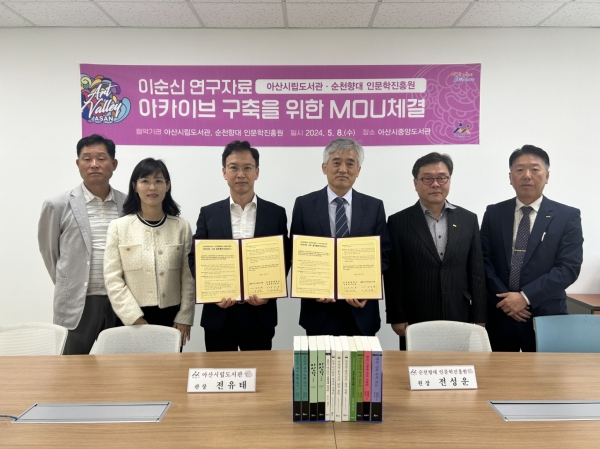 이날 업무협약식에는 전유태 아산시립도서관장과 전성운 순천향대학교 인문학진흥원장, 박동성 아산학연구소장, 오원근 인문학진흥원 부원장 등 양 기관 주요 관계자들이 참석했다.