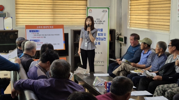 이번 교육은 원예작물 과학영농 실천 기술지원 촉진사업의 일환으로 시설원예 농가에 가장 큰 피해를 주는 바이러스 피해 예방을 위해 마련됐다.