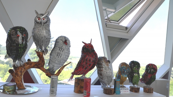 이번 전시된 작품은 대표 철새인 두루미를 시작으로 부엉이, 호랑이 등 서산버드랜드에 어울리는 동물 작품 30점이며 음료수 캔, 철 수세미, 찜기 등으로 제작됐다.
