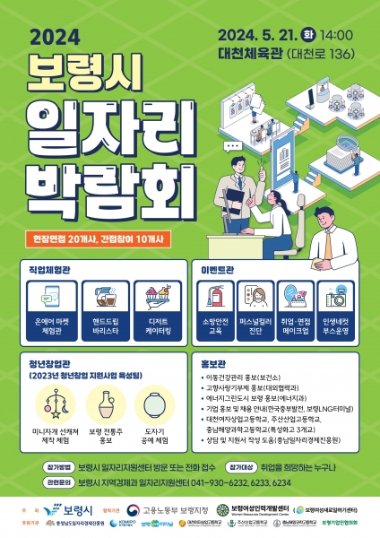 [Ytv영상스토리] 보령시는 오는 21일 오후 2시부터 4시까지 대천체육관에서 2024년 일자리박람회를 개최한다고 밝혔다.
