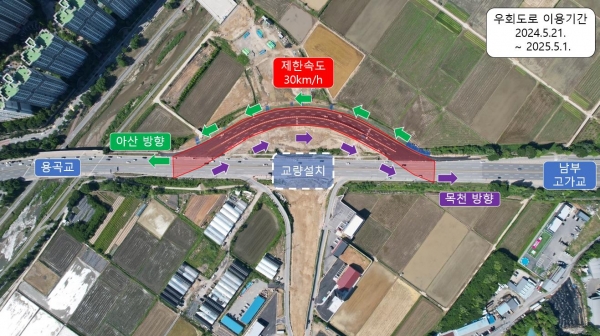 천안 남부대로 임시우회도로 이용·통행속도 제한 21일부터