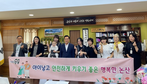 주부, 자영업자, 어린이집 교사 등으로 이루어진 학부모들은 시장실을 방문해 다양한 아동친화정책을 펼쳐 아이낳고 안전하게 키우기 좋은 논산을 만들어가는 행보를 응원했다.
