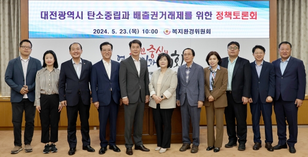 [Ytv영상스토리] 대전시의회 복지환경위원회는 안경자 의원 주재로 23일 의회 소통실에서 탄소중립 달성을 위한 ‘대전광역시 탄소중립과 배출권거래제를 위한 정책토론회’를 개최했다.