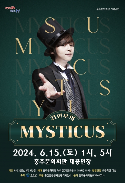 [Ytv영상스토리] 홍성군 홍주문화회관이 온 가족이 함께 즐길 수 있는 화려하고 신비한 매직쇼 ‘최현우의 MYSTICUS’를 오는 6월 15일 오후 1시와 5시 두 차례 선보인다.