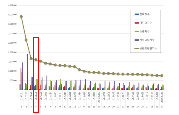 불과 2년 전만 해도 40위권에 머물던 아산시는 2023년 4월, 8위로 급상승하며 처음 10위권에 진입했고 올해 1월 7위로 자체 기록을 다시 경신하면서 이번 달에는 4위까지 진입했다.