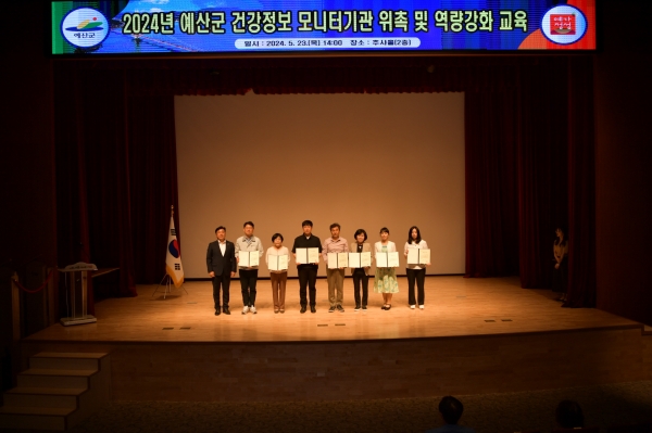 [Ytv영상스토리] 예산군보건소는 지난 23일 군청 추사홀에서 2024년 예산군 건강정보 모니터 기관 위촉 및 역량강화 교육을 진행했다.