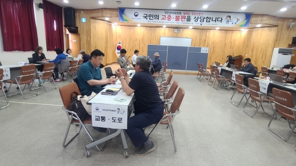 “달리는 국민신문고”는 각 분야별 구성된 국민권익위원회 조사관과 협업기관 상담반이 현장을 직접 찾아가 지역주민들의 민원을 청취하고 해결방안을 모색하는 현장 민원 상담제도이다.