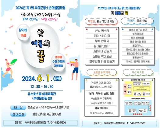 이번 행사는 6월 1일 12시 30분부터 오후 4시 30분까지 워터 ZONE, 체험 ZONE, 포토 및 먹거리 ZONE을 통해 청소년들이 당일 재미있고 다양한 체험을 할 수 있도록 준비했다.