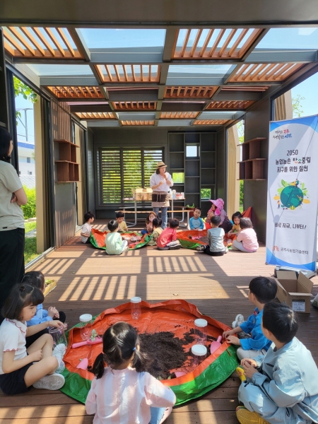 탄소중립 실천 교육 프로그램은 관내 어린이집 7개소의 원생 128명을 대상으로 5월 14일부터 6월 13일까지 한 달 동안 공주시농업기술센터 내 자연학습 치유정원에서 해당 어린이집별로 진행 중이다.