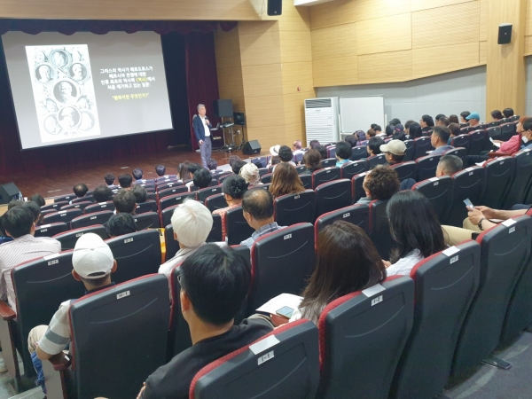 [Ytv영상스토리] 아산시는 지난 29일 배방읍 행정복지센터 대강당에서 고불 인문학 아카데미 세 번째 순서로 김상근 연세대학교 신과대학교수의 특강을 진행했다.