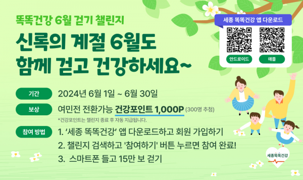 [Ytv영상스토리] 세종시가 시민들의 똑똑한 건강관리를 지원하기 위해 ‘세종 똑똑건강앱’에서 15만보 걷기 챌린지를 진행한다.