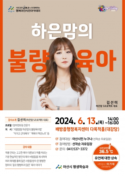아산시, 김선미 강사 ‘하은맘의 불량 육아’ 특강 개최