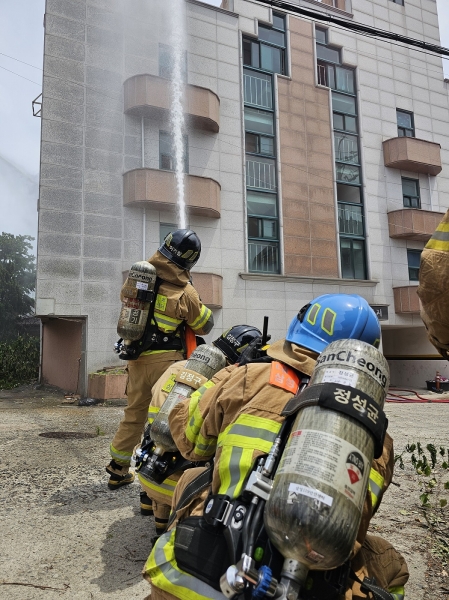 한국토지주택공사와의 협업으로 추진하는 이번 훈련은 화재 진행 단계별 화염과 열·연기의 움직임을 직접 관찰해 화재진압 방법을 익히고 소방대원의 상황별 화재 대응능력을 강화하기 위해 마련됐다.