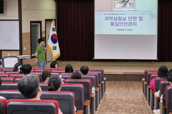 이번 배움자리는 아산교육지원청 대강당에서 진행됐으며 과학실험실에서 발생할 수 있는 사고를 예방하고 교사들의 안전관리 역량을 강화하기 위해 마련됐다.