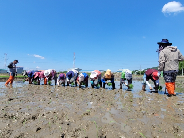 [Ytv영상스토리] 아산시는 지난 4일 아산시 염치읍 일대 벼 원원종 종자채종 포장에 해맑은벼 손 모내기를 실시했다.