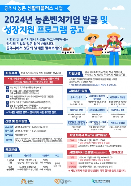 공주시, 농촌벤처기업 성장지원 프로그램 참여기업 모집