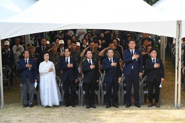 박정현 군수는 “6·25전쟁 74주년인 올해 예순아홉번째 현충일을 맞아 독립과 자유민주주의가 나라를 세우고 지켜낸 우리의 영웅들을 되새기는 날로 지금도 우리 곁에서 국가안보와 국민 안전의 최일선에서 자신을 헌신하시는 모든 분들은 애국자이시며 그분들께 깊은 존경을 표하고 영웅들의 헌신에 대한 기억과 계승을 위한 보훈에 최선을 다할 것”이라고 추념사를 했다.