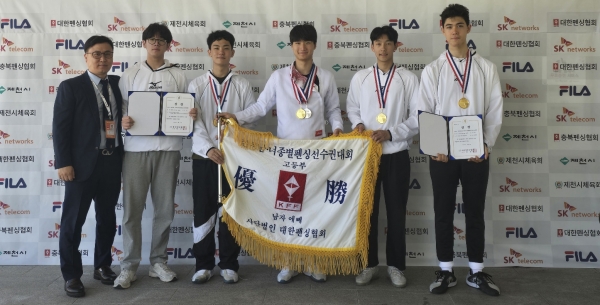 단체전 결승에서는 주장인 송제헌 학생선수를 필두로 지민규, 정연우, 엠베르 윌리엄 가브리엘 선수들이 네 명이 한몸인 것처럼 송제헌, 지민규 선수가 점수를 벌려 주면 정연우, 엠베르 윌리엄 가브리엘 선수가 점수를 지켜주는 경기 운영 방식으로 강팀인 여러 학교를 이기고 금메달을 획득하는 값진 성과를 거뒀다.