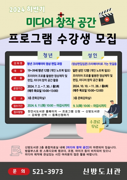 천안 신방도서관 하반기 미디어 창작 공간 프로그램 운영