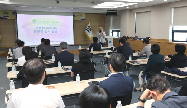 보다 효율적이고 내실 있는 교육을 위해 한국양성평등교육진흥원에서 4대 폭력 전문 강사로 활동 중인 김수자 강사를 초빙해 조직 내 부적절한 성희롱·성폭력 관련 실제 발생 사례와 2차 피해 예방 대책에 대한 교육을 실시했다.