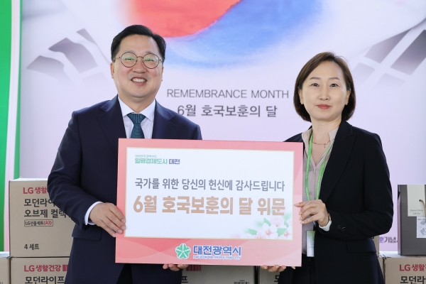 이어 대전보훈요양원에서 요양 중인 국가유공자 및 유가족, 참전군인 등 110여명의 어르신들에게도 위문품을 전달하고 감사와 존경의 마음을 전했다.