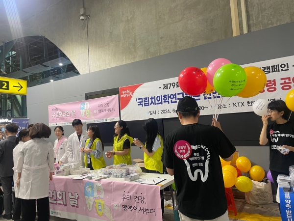 시는 지난 5일 KTX 천안아산역에서 ‘우리 건강, 이 행복에서부터’란 표어 아래 충남도청, 천안시보건소, 충남권역장애인구강진료센터, 대한치과위생사협회 충남도회, 대한구강보건협회 충남지부 등과 함께 역사 이용객들을 대상으로 구강건강 홍보관을 운영했다.