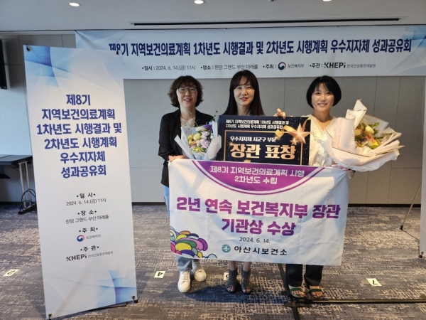 장동민 보건소장은 “지역주민의 건강향상을 위해 수립한 지역보건의료계획이 2년 연속 성과를 인정받아 기쁘다”며 “앞으로도 지역별 의료불균형을 해소하고 공공보건 의료기능을 강화해 시민 모두가 건강하고 행복한 아산이 되도록 더욱더 노력할 것”이라고 밝혔다.