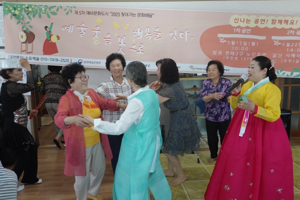 6월 중 개최되는 찾아가는 문화배달 사업은 △6월 18일 해인노인주간보호센터 △6월 19일 가좌동 마을회관 △6월 20일 광천 소암리 마을회관 △6월 21일 거북이마을 전통회관 △6월 23일 광천 잇슈창고 △6월 25일 홍동면 모전 마을회관 △6월 26일 에덴광천요양원 △6월 27일 결성 할머니 경로당 △6월 28일 양지노인요양주간보호센터 △6월 29일 구룡리 서구 경로당 등 총 10회에 걸쳐 공연이 펼쳐진다.