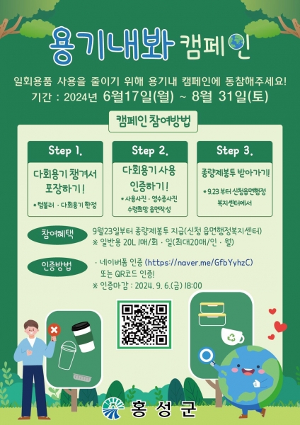 홍성군, ‘용기내봐 캠페인’으로 1회용품 줄이기 나서