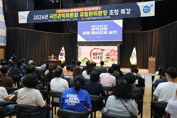 [Ytv영상스토리] 계룡시는 17일 계룡문화예술의전당에서 국민권익위원회 유철환 위원장을 초청해 ‘2024년 민·관이 함께하는 청렴 특강’을 개최했다고 밝혔다.
