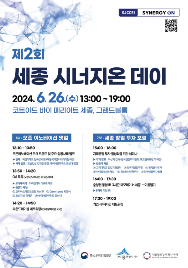 이번 세종 시너지온 데이 행사는 올해 들어 시가 창업 기업의 기술 고도화 및 네트워킹을 통한 실질적 사업 확장을 이끌고 유기적인 창업 투자생태계를 조성하고자 본격적으로 시작한 사업이다.