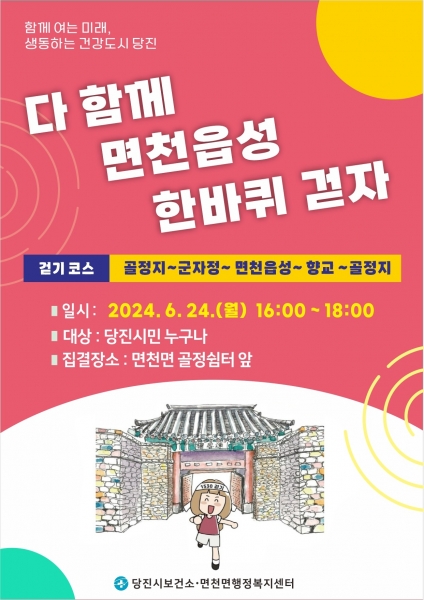 [Ytv영상스토리] 당진시보건소에서는 오는 24일 오후 4시 면천면에서 ‘ 다 함께 면천읍성 걷기’ 행사를 진행한다.