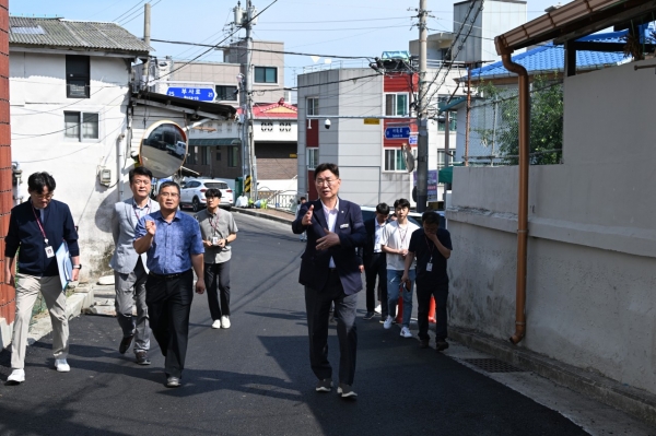 이날 점검은 지난 교장선생님과의 간담회에서 문제가 제기되었던 통학로를 중심으로 김제선 중구청장, 학교장, 중구 문화경제국장, 문화체육과, 교통과, 건설과 등 관련 담당자가 참석해 학교 주변 통학로의 위해 요인 개선 등 교육환경개선과 주민과 학생들의 안전을 확보할 수 있는 방안을 강구하기 위해 마련됐다.