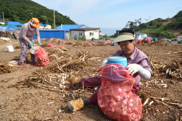 태안 유황마늘생산자 영농조합법인 주관으로 실시된 가의도 6쪽마늘 수확 작업은 법인 회원 및 마을 작목반 120명이 참여한 가운데 수확과 주대작업, 선별·포장, 선적 등의 과정을 거쳐 실시됐으며 태안군이 필요 경비 1억 2600만원을 부담했다.