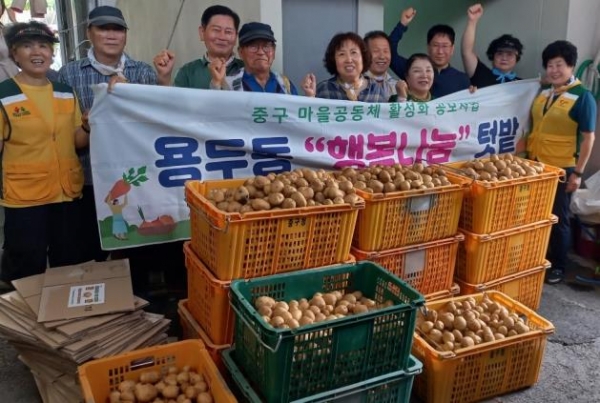 [Ytv영상스토리] 대전 중구 용두동은 지난 24일 용두동 자원봉사협의회에서 마을공동체 공모사업으로 운영 중인‘용두동 행복나눔 텃밭’에서 감자를 수확해 관내 어려운 이웃들과 경로당에 전달했다고 밝혔다.