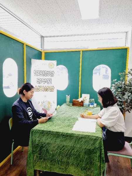공무원 마음건강센터에서는 민원 스트레스로 인해 정신적· 신체적 부담을 겪고 있는 공무원의 심리상담, 심리검사, 맞춤형 심리지원 프로그램 등을 운영하고 있다.