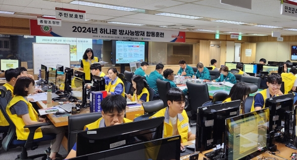 특히 최초로 훈련 중 재난안전통신망을 사용해 시와 원안위 등 각 방사능비상대응본부와 구호소, 합동방사선감시센터, 현장방사선비상진료소, 한국원자력연구원 하나로실 등 재난 현장 4개소를 연결해 기관별 훈련상황을 함께 공유하며 진행했다.