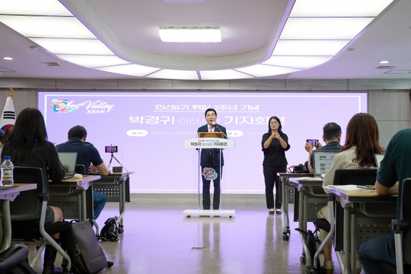 이날 박경귀 시장은 민선 8기 2년 주요 성과로 △도시브랜드 순위 수직 상승 △12년 연속 충남 시군 종합평가 1위 △국립경찰병원 분원 건축분야 최초 신속 예타사업 선정 △무기발광 디스플레이 기술 개발 및 생태계 구축 사업 예비타당성 조사 통과 △대한민국 1호 법정 온천도시 선정 등을 꼽았다.