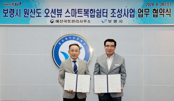 [Ytv영상스토리] 보령시와 예산국토관리사무소는 지난 26일 국도77호선 도로 이용자들에게 안전하고 쾌적한 쉼터를 제공하고 지역 경제 활성화를 위한‘보령시 원산도 오션뷰 스마트 복합쉼터 조성사업’추진 업무협약식을 가졌다.